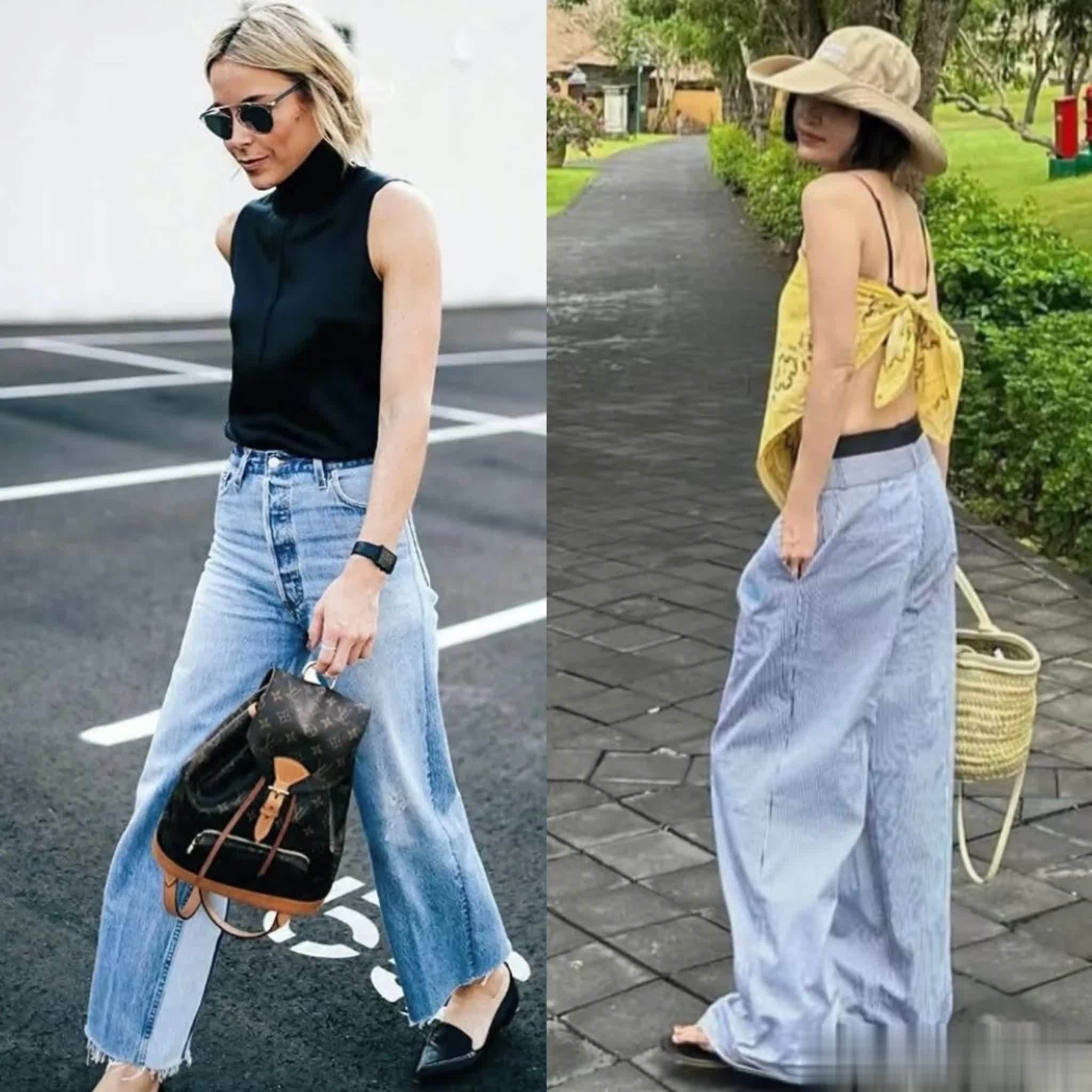 黑色背心搭配九分牛仔阔腿裤,露出纤细的胳膊与脚踝,彰显出自己的身材优势,既时髦又耐看。