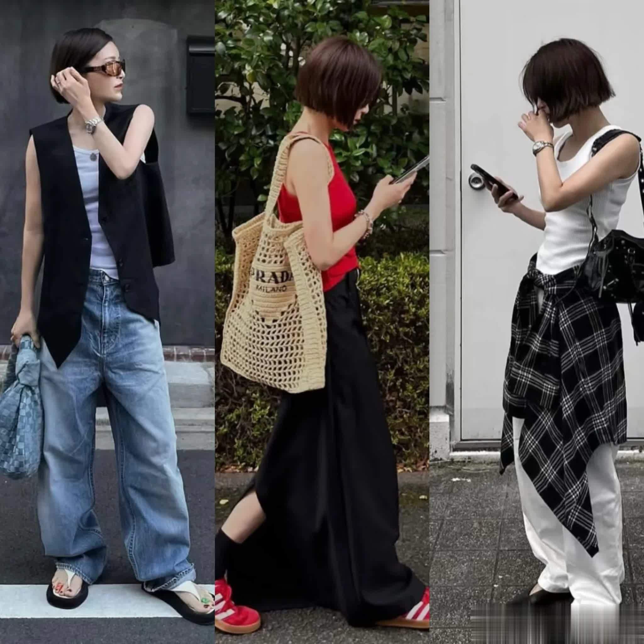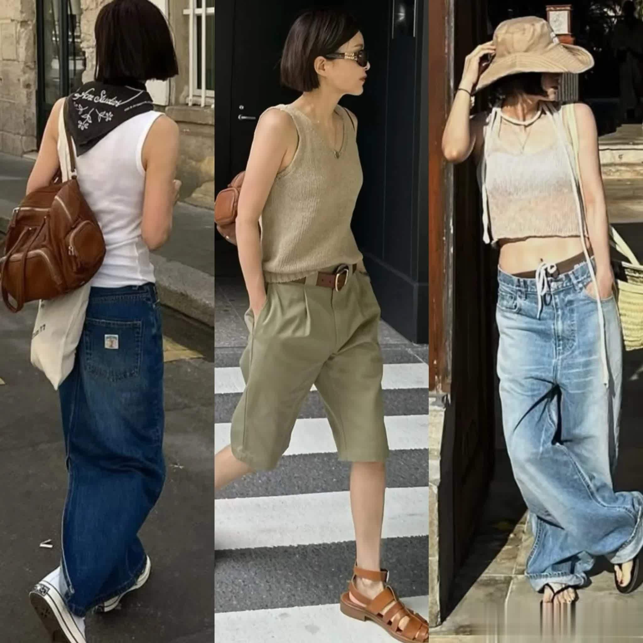 夏天瘦一些的女生特别推荐背心,穿起来够帅气,又非常的减龄不活力,无论是搭配长裙还是阔腿裤,都显瘦好看。
